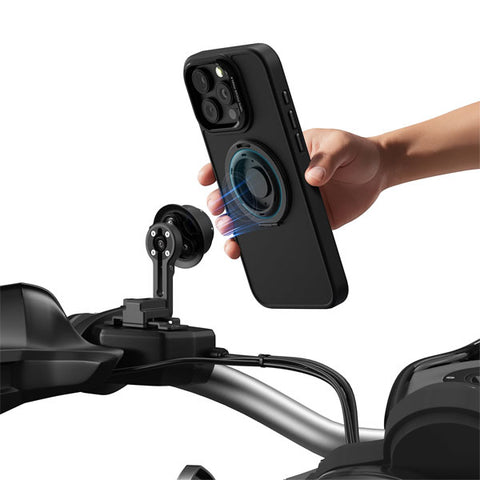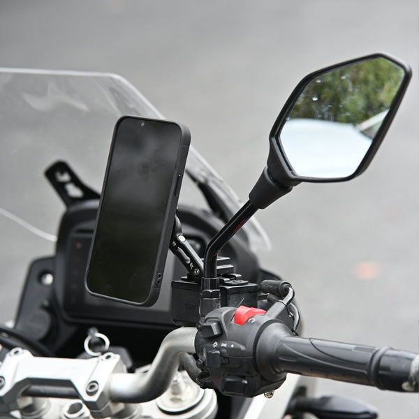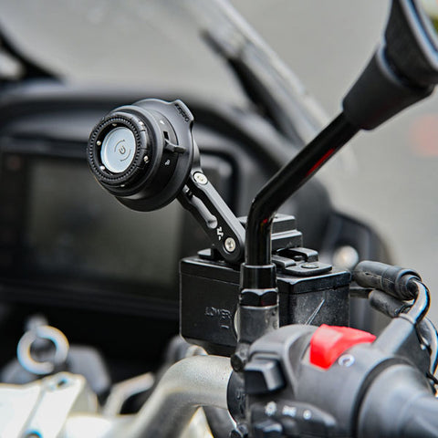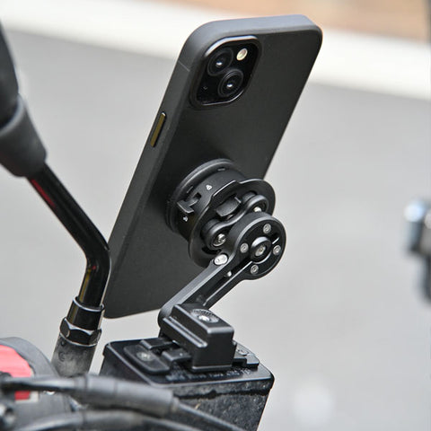 The QM07 attaches directly onto your motorcycle's brake fluid reservoir. With an articulating arm, you can easily adjust the phone angle.