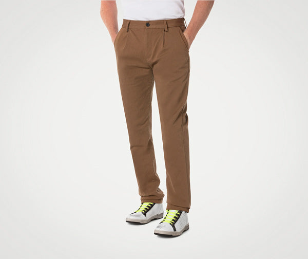Looking for riding pants that are smarter than a pair of denim jeans? PMJ's Italian-made Sunset chinos seamlessly blend style, comfort and protection.These single-layer trousers are made from Ultracor, a tough cotton and Cordura mix fabric, making these super comfortable to wear all day but with a strong AA rating for riding safety.