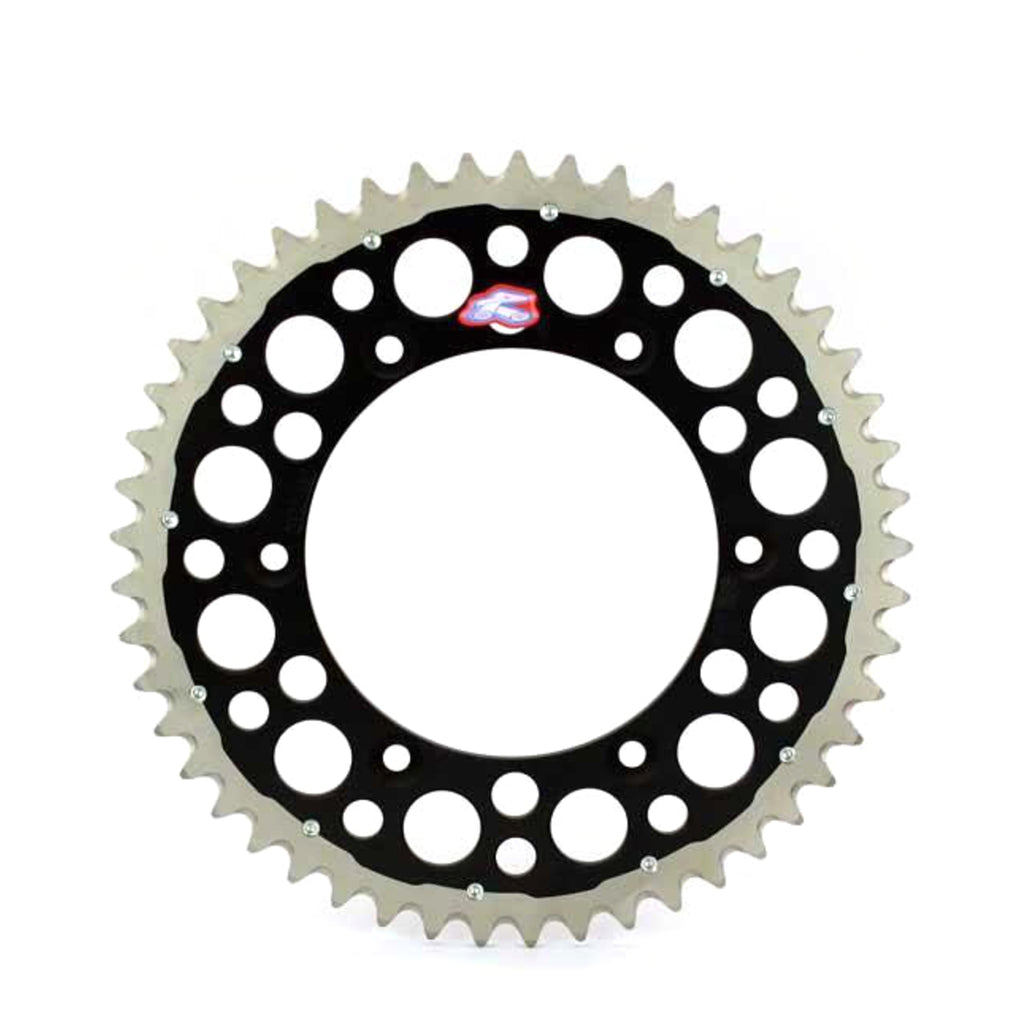 The Renthal Twinring Rear Sprocket is a long-lasting durable Off-Road sprocket that was developed and tested over the course of 5 years. The unique flat face two piece design keeps weight to a minimum and maximizes durability all while keeping a narrow profile. The outer steel ring is expanded at 200°C and then fitted to the aluminum inner before cooling, this process creates a permanent bond while flat socket set screws prevent lateral movement between the rings.