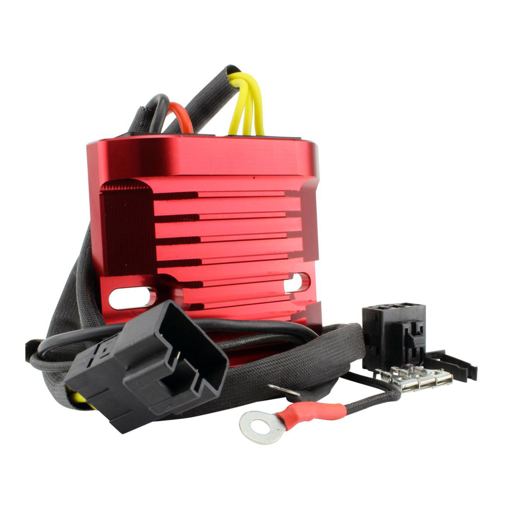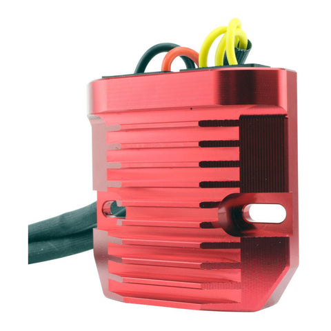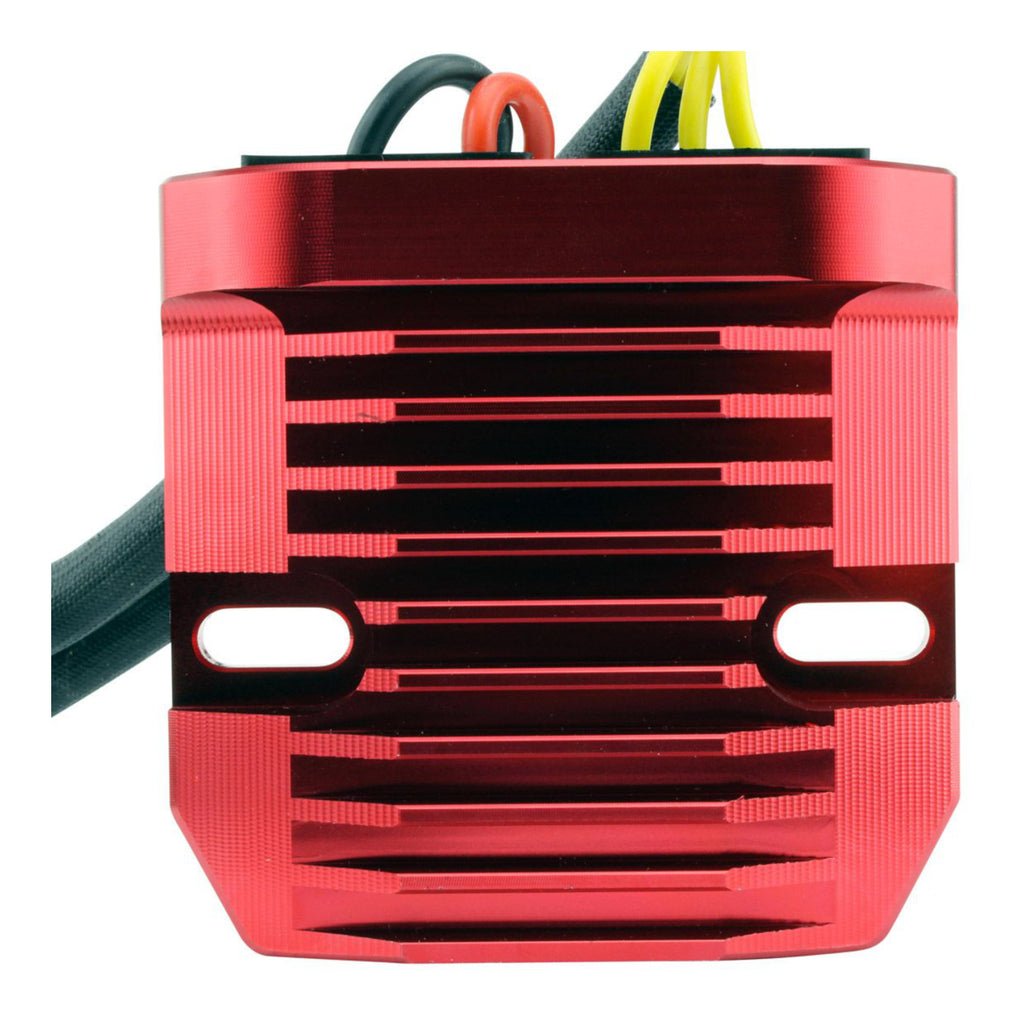Significantly lowers the operating temperature for an increased voltage regulator lifespan. Provide a steadier and smoother signal to the battery. - Billet aluminum housing: Runs 33% cooler than standard cast voltage regulator housings.